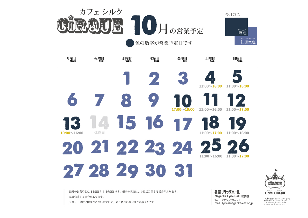 ビュッフェ「Cafe CiRQUE」10月の営業日
