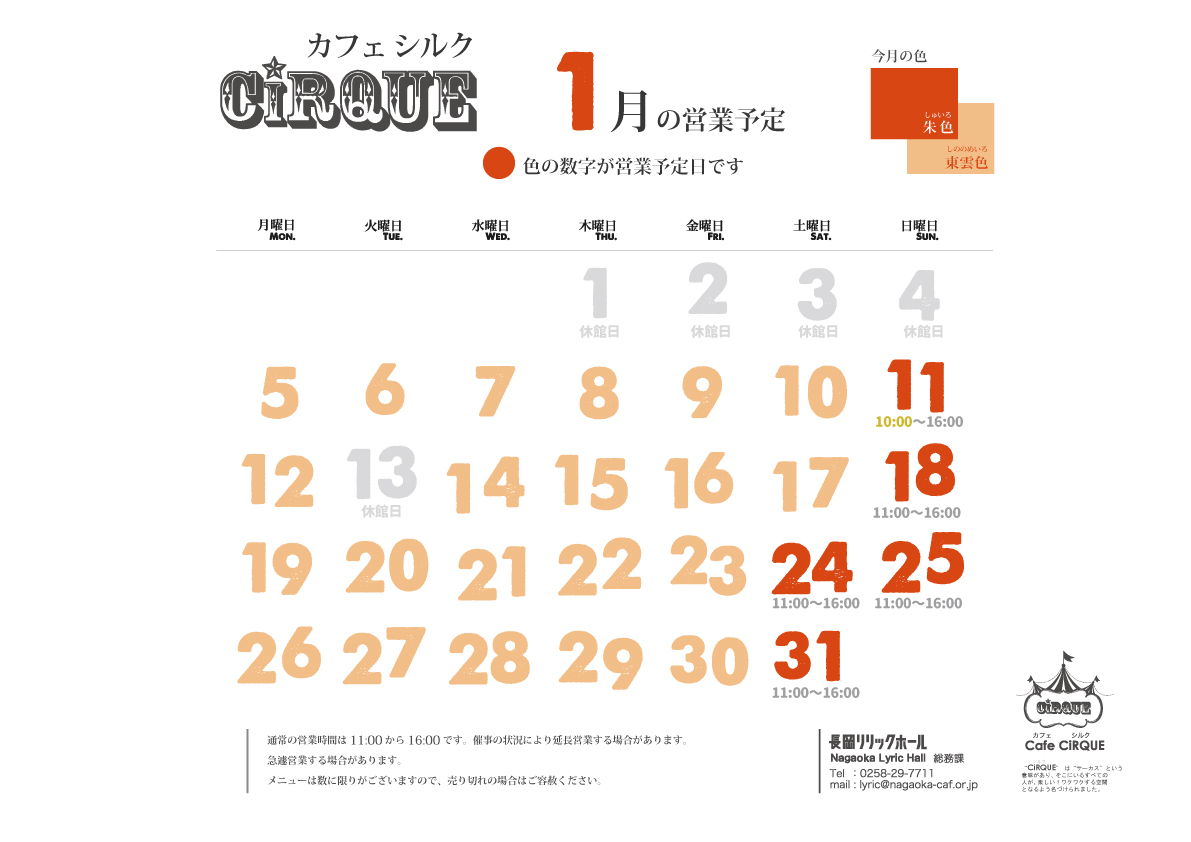 ビュッフェ「Cafe CiRQUE 」1月の営業日