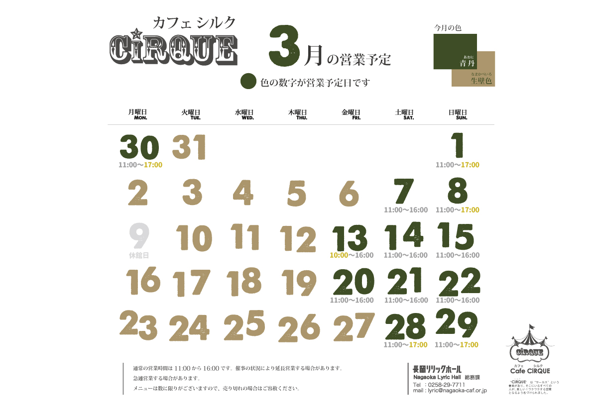 ビュッフェ「Cafe CiRQUE 」3月の営業日