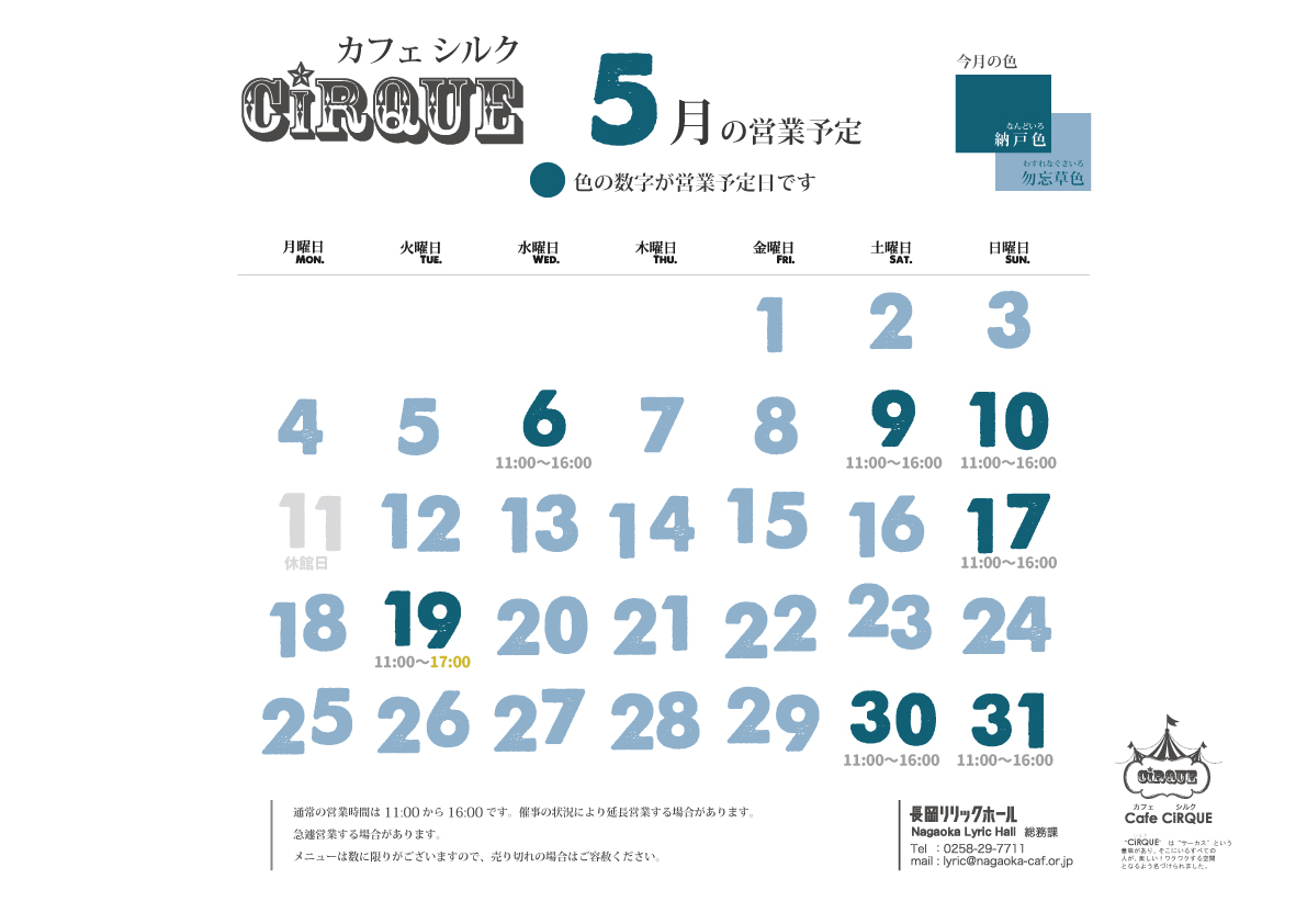 ビュッフェ「Cafe CiRQUE 」5月の営業日