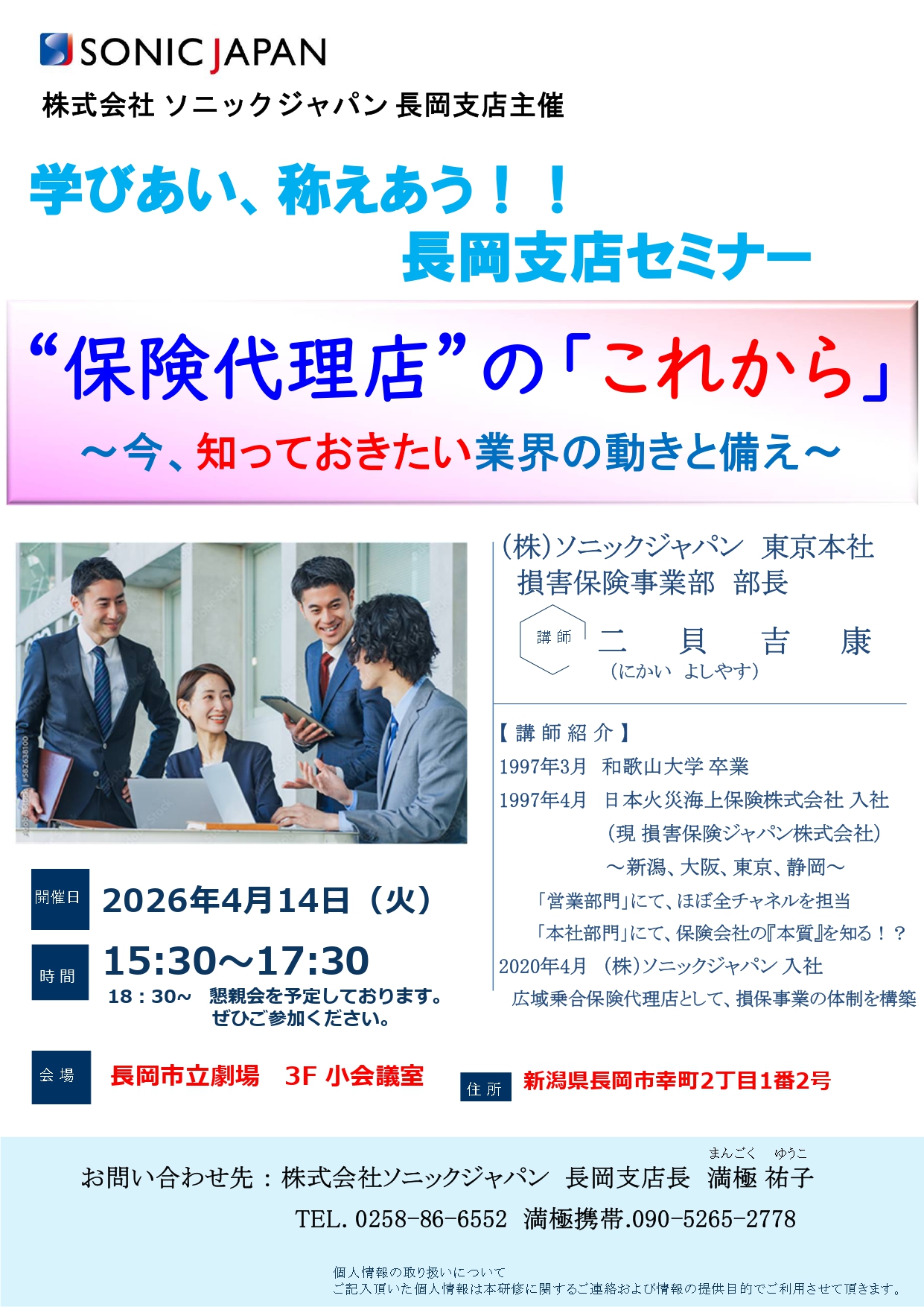 お問い合わせ:株式会社ソニックジャパン 0258-86-6552(満極)