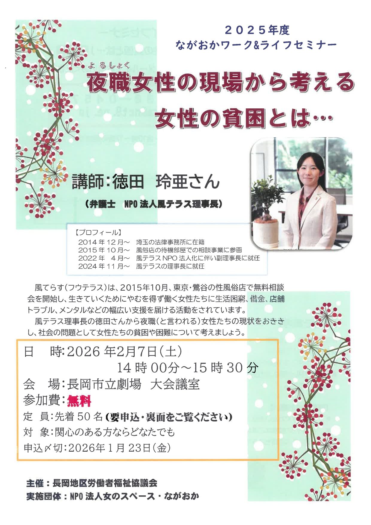 夜職(よるしょく)女性の現場から考える女性の貧困とは・・・ 2025年度ながおかワーク&ライフセミナー